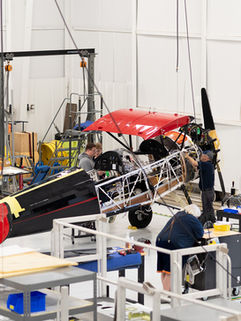 A curated photo gallery documenting the aircraft build from first components to final assembly.